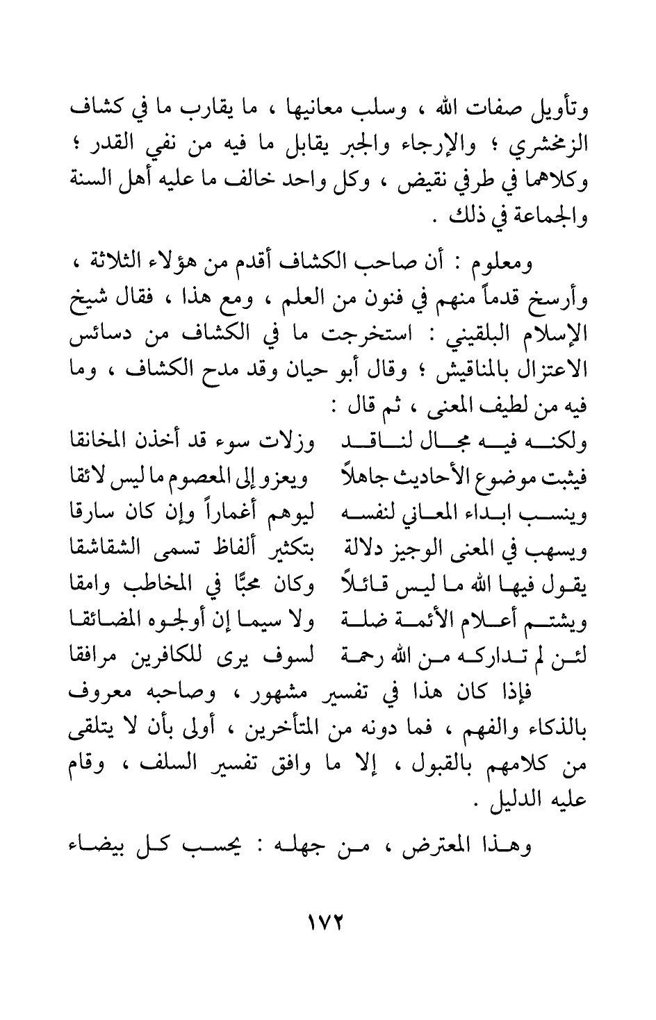 وتأويل صفات الله، وسلب معانيها، ما يقارب ما في كشاف الزمخشري; والإرجاء والجبر يقابل ما فيه من نفي القدر; وكلاهما في طرفي نقيض، وكل واحد خالف ما عليه أهل السنة والجماعة في ذلك.
