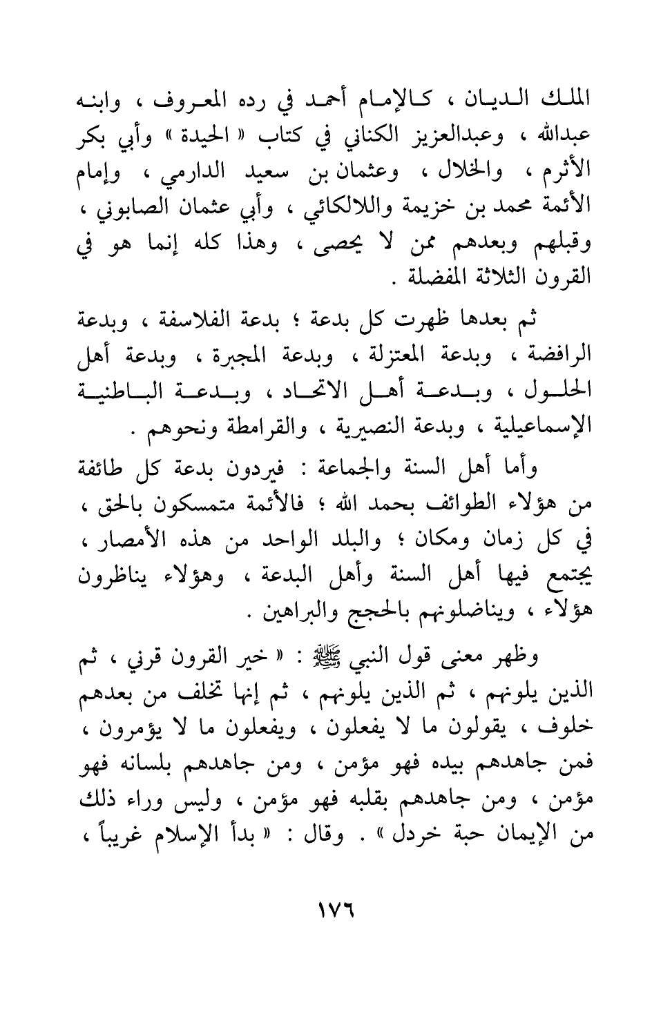 ثم بعدها ظهرت كل بدعة، بدعة الفلاسفة، وبدعة الرافضة، وبدعة المعتزلة، وبدعة المجبرة، وبدعة أهل الحلول، وبدعة أهل الاتحاد، وبدعة الباطنية الإسماعيلية، وبدعة النصيرية، والقرامطة ونحوهم.