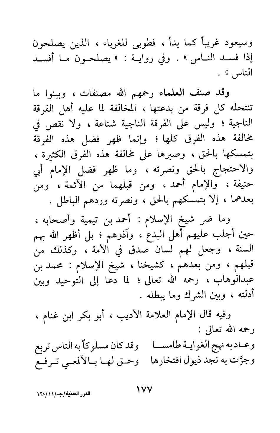 وفيه قال الإمام العلامة الأديب، أبو بكر ابن غنام، رحمه الله تعالى:
