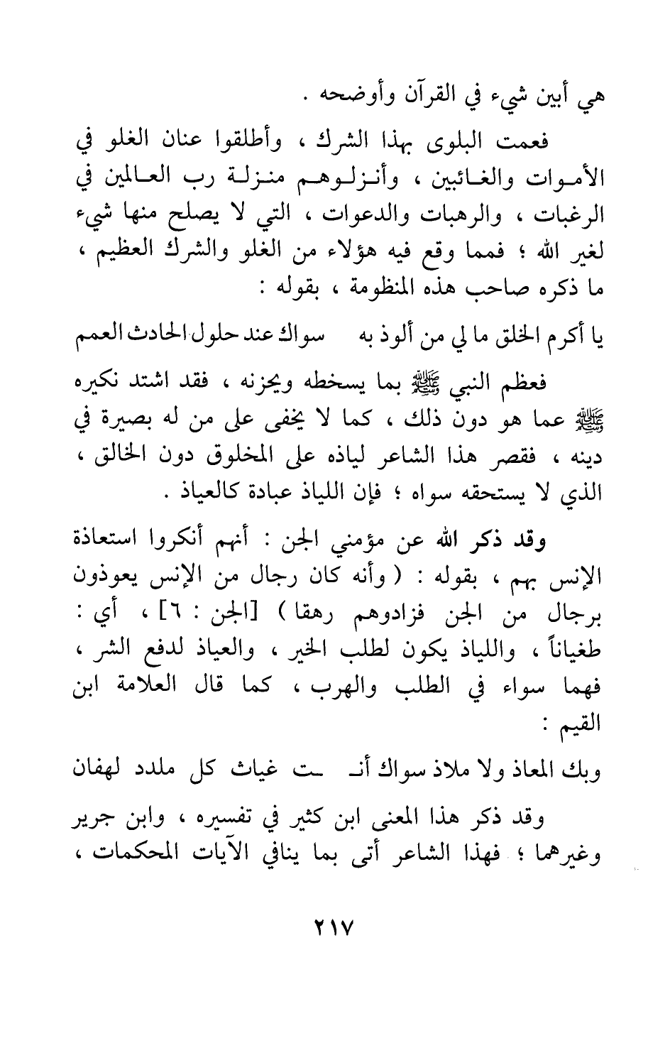 فعظم النبي صلى الله عليه وسلم بما يسخطه ويحزنه؛ فقد اشتد نكيره صلى الله عليه وسلم عما هو دون ذلك، كما لا يخفى على من له بصيرة في دينه؛ فقصر هذا الشاعر لياذه على المخلوق دون الخالق، الذي لا يستحقه سواه؛ فإن اللياذ عبادة كالعياذ.