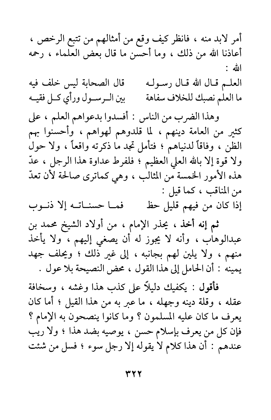 وهذا الضرب من الناس: أفسدوا بدعواهم العلم، على كثير من العامة دينهم، لما قلدوهم لهواهم، وأحسنوا بهم الظن، وفاقا لدنياهم; فتأمل تجد ما ذكرته واقعا، ولا حول ولا قوة إلا بالله العلي العظيم; فلفرط عداوة هذا الرجل، عدّ هذه الأمور الخمسة من المثالب؛ وهي كما ترى صالحة لأن تعدّ من المناقب، كما قيل: