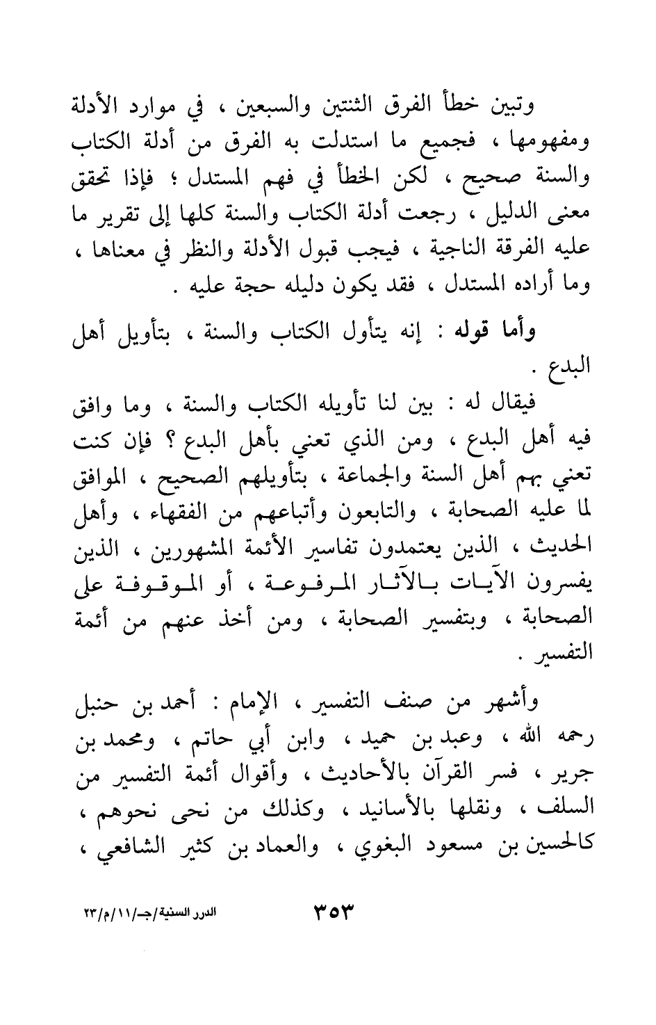فيقال له: بين لنا تأويله الكتاب والسنة، وما وافق فيه أهل البدع، ومن الذي تعني بأهل البدع؟ فإن كنت تعني بهم أهل السنة والجماعة، بتأويلهم الصحيح، الموافق لما عليه الصحابة، والتابعون وأتباعهم من الفقهاء، وأهل الحديث، الذين يعتمدون تفاسير الأئمة المشهورين الذين يفسرون الآيات بالآثار المرفوعة، أو الموقوفة على الصحابة، وبتفسير الصحابة، ومن أخذ عنهم من أئمة التفسير.