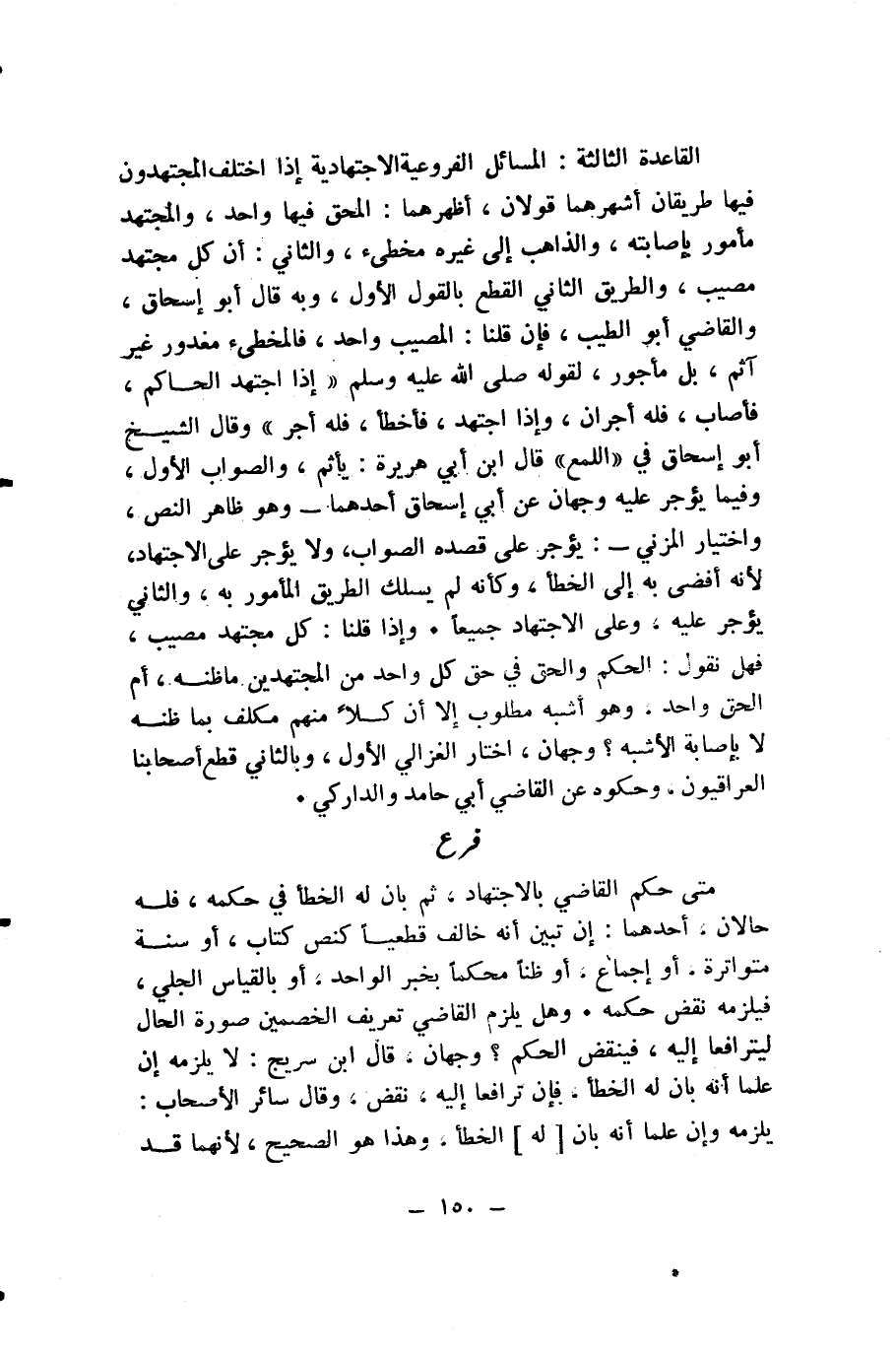 الْقَاعِدَةُ الثَّالِثَةُ: الْمَسَائِلُ الْفُرُوعِيَّةُ الِاجْتِهَادِيَّةُ إِذَا اخْتَلَفَ الْمُجْتَهِدُونَ فِيهَا طَرِيقَانِ أَشْهَرُهُمَا قَوْلَانِ، أَظْهَرُهُمَا: الْمُحِقُّ فِيهَا وَاحِدٌ، وَالْمُجْتَهِدُ مَأْمُورٌ بِإِصَابَتِهِ، وَالذَّاهِبُ إِلَى غَيْرِهِ مُخْطِئٌ، وَالثَّانِي: أَنَّ كُلَّ مُجْتَهِدٍ مُصِيبٌ، وَالطَّرِيقُ الثَّانِي الْقَطْعُ بِالْقَوْلِ الْأَوَّلِ، وَبِهِ قَالَ أَبُو إِسْحَاقَ، وَالْقَاضِي أَبُو الطَّيِّبِ، فَإِنْ قُلْنَا: الْمُصِيبُ وَاحِدٌ، فَالْمُخْطِئُ مَغْدُورٌ غَيْرُ آثِمٍ، بَلْ مَأْجُورٌ، لِقَوْلِهِ - صَلَّى اللَّهُ عَلَيْهِ وَسَلَّمَ - «إِذَا اجْتَهَدَ الْحَاكِمُ، فَأَصَابَ، فَلَهُ أَجْرَانِ، وَإِذَا اجْتَهَدَ، فَأَخْطَأَ، فَلَهُ أَجْرٌ» وَقَالَ الشَّيْخُ أَبُو إِسْحَاقَ فِي «اللُّمَعِ» قَالَ ابْنُ أَبِي هُرَيْرَةَ: يَأْثَمُ، وَالصَّوَابُ الْأَوَّلُ، وَفِيمَا يُؤْجَرُ عَلَيْهِ وَجْهَانِ عَنْ أَبِي إِسْحَاقَ أَحَدُهُمَا - وَهُوَ ظَاهِرُ النَّصِّ، وَاخْتِيَارُ الْمُزَنِيِّ -: يُؤْجَرُ عَلَى قَصْدِهِ الصَّوَابَ، وَلَا يُؤْجَرُ عَلَى الِاجْتِهَادِ؛ لِأَنَّهُ أَفْضَى بِهِ إِلَى الْخَطَأِ، وَكَأَنَّهُ لَمْ يَسْلُكِ الطَّرِيقَ الْمَأْمُورَ بِهِ، وَالثَّانِي يُؤْجَرُ عَلَيْهِ، وَعَلَى الِاجْتِهَادِ جَمِيعًا. وَإِذَا قُلْنَا: كُلُّ مُجْتَهِدٍ مُصِيبٌ، فَهَلْ نَقُولُ: الْحُكْمُ وَالْحَقُّ فِي حَقِّ كُلِّ وَاحِدٍ مِنَ الْمُجْتَهِدِينَ مَا ظَنَّهُ، أَمِ الْحَقُّ وَاحِدٌ، وَهُوَ أَشْبَهُ مَطْلُوبٍ إِلَّا أَنَّ كُلًّا مِنْهُمْ مُكَلَّفٌ بِمَا ظَنَّهُ لَا بِإِصَابَةِ الْأَشْبَهِ؟ وَجْهَانِ، اخْتَارَ الْغَزَالِيُّ الْأَوَّلَ، وَبِالثَّانِي قَطَعَ أَصْحَابُنَا الْعِرَاقِيُّونَ، وَحَكَوْهُ عَنِ الْقَاضِي أَبِي حَامِدٍ وَالدَّارِكِيِّ.