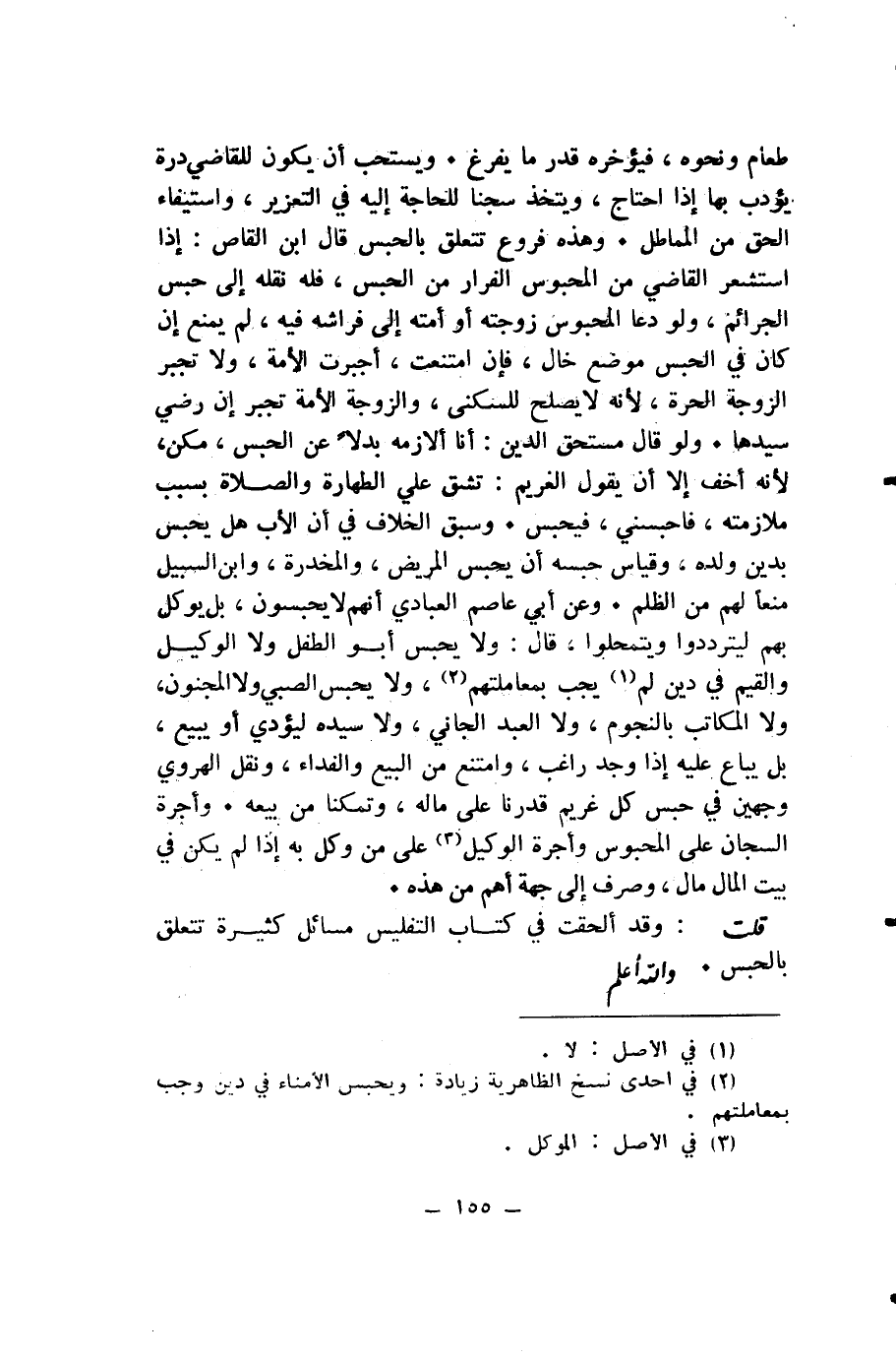 قُلْتُ: وَقَدْ أَلْحَقْتُ فِي كِتَابِ التَّفْلِيسِ مَسَائِلَ كَثِيرَةً تَتَعَلَّقُ بِالْحَبْسِ، وَاللَّهُ أَعْلَمُ.