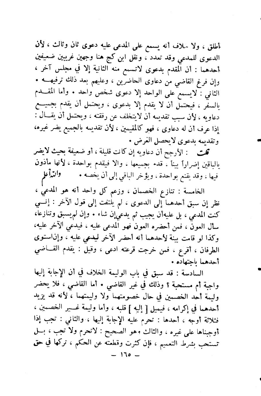 قُلْتُ: الْأَرْجَحُ أَنَّ دَعَاوِيَهُ إِنْ كَانَتْ قَلِيلَةً، أَوْ ضَعِيفَةً بِحَيْثُ لَا يَضُرُّ بِالْبَاقِينَ إِضْرَارًا بَيِّنًا، قُدِّمَ بِجَمِيعِهَا، وَإِلَّا فَيُقَدَّمُ بِوَاحِدَةٍ، لِأَنَّهَا مَأْذُونٌ فِيهَا، وَقَدْ يَقْنَعُ بِوَاحِدَةٍ، وَيُؤَخِّرُ الْبَاقِيَ إِلَى أَنْ يَخُصَّهُ، وَاللَّهُ أَعْلَمُ.