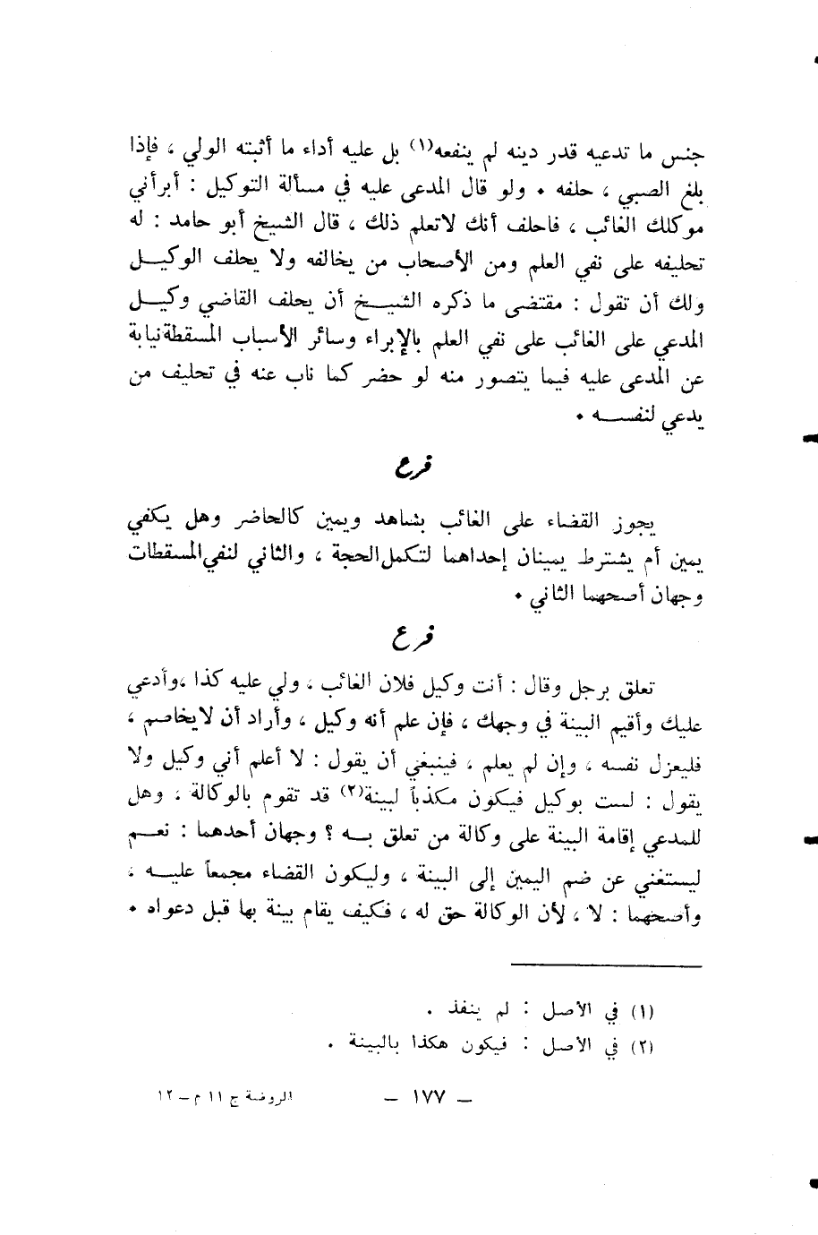 جِنْسِ مَا تَدَّعِيهِ قَدْرَ دَيْنِهِ لَمْ يَنْفَعْهُ بَلْ عَلَيْهِ أَدَاءُ مَا أَثْبَتَهُ الْوَلِيُّ، فَإِذَا بَلَغَ الصَّبِيُّ، حَلَّفَهَ. وَلَوْ قَالَ الْمُدَّعَى عَلَيْهِ فِي مَسْأَلَةِ التَّوْكِيلِ: أَبْرَأَنِي مُوَكِّلُكُ الْغَائِبُ، فَاحْلِفْ أَنَّكَ لَا تَعْلَمُ ذَلِكَ، قَالَ الشَّيْخُ أَبُو حَامِدٍ: لَهُ تَحْلِيفُهُ عَلَى نَفْيِ الْعِلْمِ وَمِنَ الْأَصْحَابِ مَنْ يُخَالِفُهُ وَلَا يُحَلِّفُ الْوَكِيلَ وَلَكَ أَنْ تَقُولَ: مُقْتَضَى مَا ذَكَرَهُ الشَّيْخُ أَنْ يُحَلِّفَ الْقَاضِي وَكِيلَ الْمُدَّعِي عَلَى الْغَائِبِ عَلَى نَفْيِ الْعِلْمِ بِالْإِبْرَاءِ وَسَائِرِ الْأَسْبَابِ الْمُسْقِطَةِ نِيَابَةً عَنِ الْمُدَّعَى عَلَيْهِ فِيمَا يُتَصَوَّرُ مِنْهُ لَوْ حَضَرَ كَمَا نَابَ عَنْهُ فِي تَحْلِيفِ مَنْ يَدَّعِي لِنَفْسِهِ.