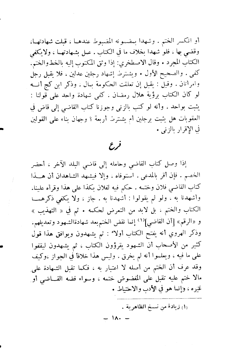 ثُمَّ فِي «التَّهْذِيبِ» وَالرَّقْمِ أَنَّ الْقَاضِيَ إِنَّمَا نَقَضَ الْخَتْمَ بَعْدَ شَهَادَةِ الشُّهُودِ وَتَعْدِيلِهِمْ، وَذَكَرَ الْهَرَوِيُّ أَنَّهُ يَفْتَحُ الْكِتَابَ أَوَّلًا ثُمَّ يَشْهَدُونَ. وَيُوَافِقُ هَذَا قَوْلَ كَثِيرٍ مِنَ الْأَصْحَابِ أَنَّ الشُّهُودَ يَقْرَأُونَ الْكِتَابَ، ثُمَّ يَشْهَدُونَ لِيَقِفُوا عَلَى مَا فِيهِ، وَيَعْلَمُوا أَنَّهُ لَمْ يُخْرَقْ، وَلَيْسَ هَذَا خِلَافًا فِي الْجَوَازِ، وَكَيْفَ وَقَدْ عُرِفَ أَنَّ الْخَتْمَ مِنْ أَصْلِهِ لَا اعْتِبَارَ بِهِ، فَكَمَا تُقْبَلُ الشَّهَادَةُ عَلَى مَا لَا خَتْمَ عَلَيْهِ تُقْبَلُ عَلَى الْمَفْضُوضِ خَتْمُهُ، وَسَوَاءٌ فَضَّهُ الْقَاضِي أَوْ غَيْرُهُ، وَإِنَّمَا هُوَ فِي الْأَدَبِ وَالِاحْتِيَاطِ.