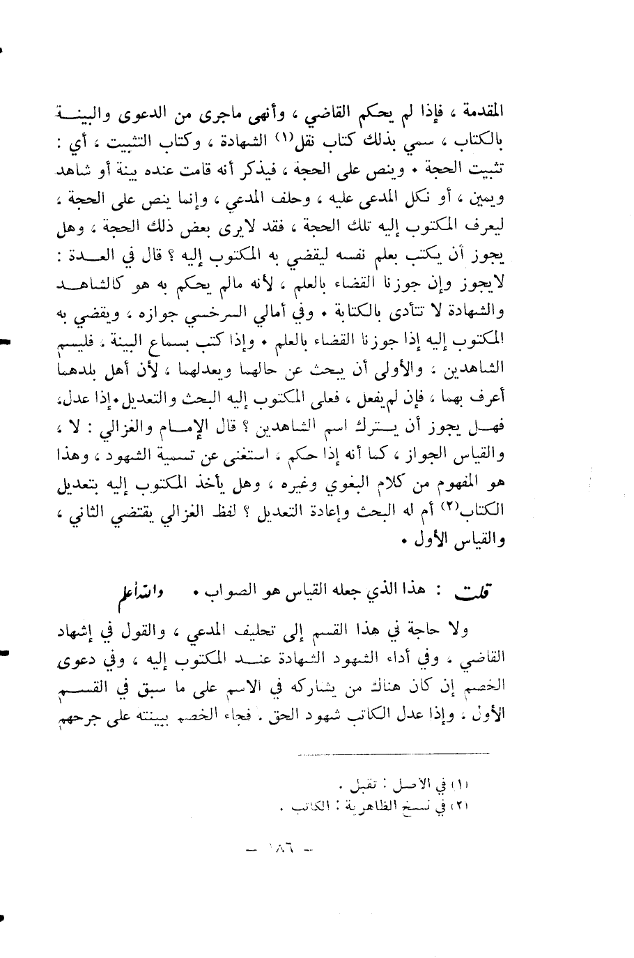 الْمُقَدَّمَةُ، فَإِذَا لَمْ يَحْكُمِ الْقَاضِي، وَأَنْهَى مَا جَرَى مِنَ الدَّعْوَى وَالْبَيِّنَةِ بِالْكِتَابِ، سُمِّيَ بِذَلِكَ كِتَابَ نَقْلِ الشَّهَادَةِ، وَكِتَابَ التَّثْبِيتِ، أَيْ: تَثْبِيتِ الْحُجَّةِ.
