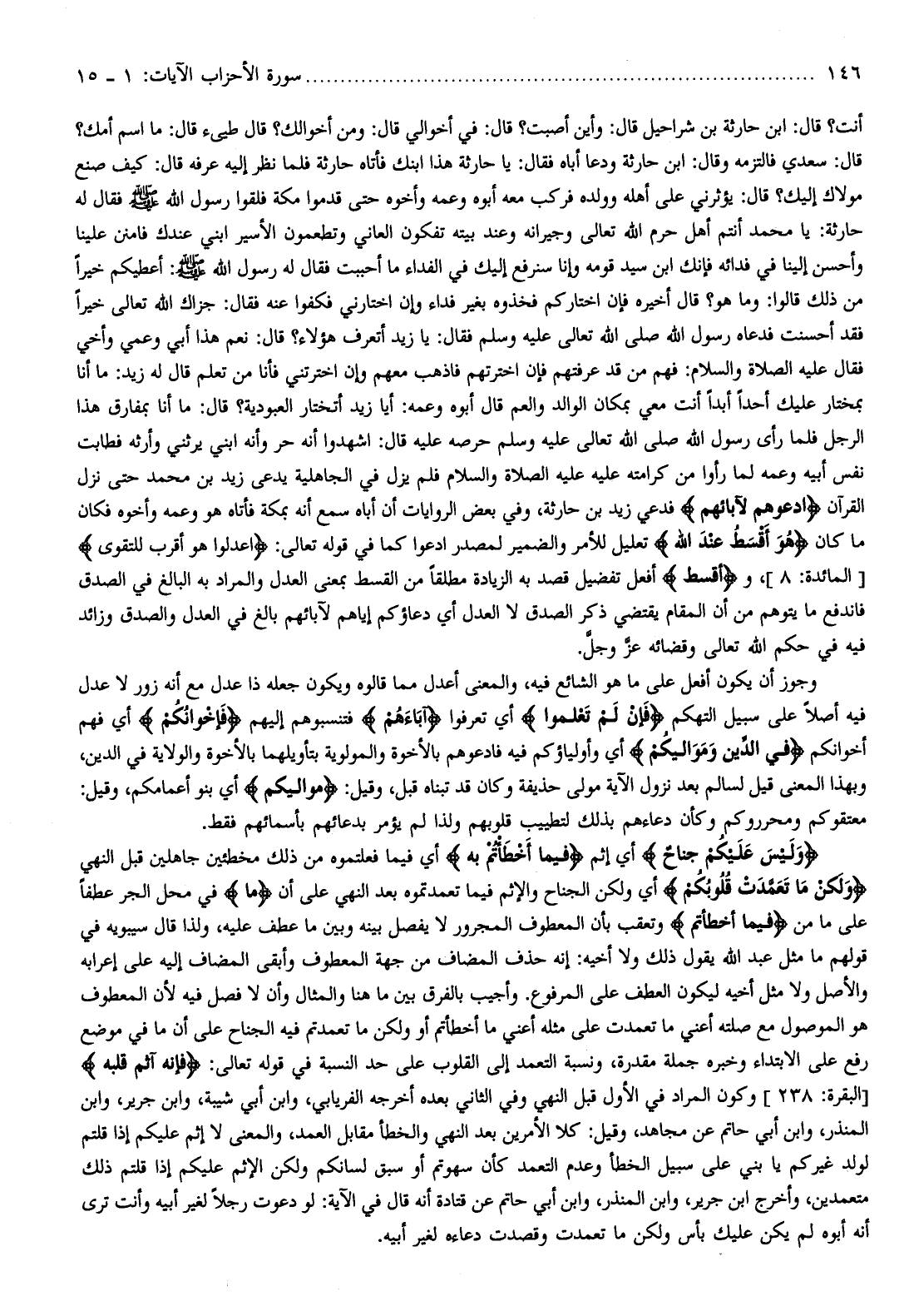 فطابت نفس أبيه وعمه لما رأوا من كرامته عليه عليه الصلاة والسلام فلم يزل في الجاهلية يدعى زيد بن محمد حتى نزل القرآن ادْعُوهُمْ لِآبائِهِمْ فدعي زيد بن حارثة، وفي بعض الروايات أن أباه سمع أنه بمكة فأتاه هو وعمه وأخوه فكان ما كان هُوَ أَقْسَطُ عِنْدَ اللَّهِ تعليل للأمر والضمير لمصدر ادعوا كما في قوله تعالى: اعْدِلُوا هُوَ أَقْرَبُ لِلتَّقْوى [المائدة: 8] ، وأَقْسَطُ أفعل تفضيل قصد به الزيادة مطلقا من القسط بمعنى العدل والمراد به البالغ في الصدق فاندفع ما يتوهم من أن المقام يقتضي ذكر الصدق لا العدل أي دعاؤكم إياهم لآبائهم بالغ في العدل والصدق وزائد فيه في حكم الله تعالى وقضائه عزّ وجلّ.