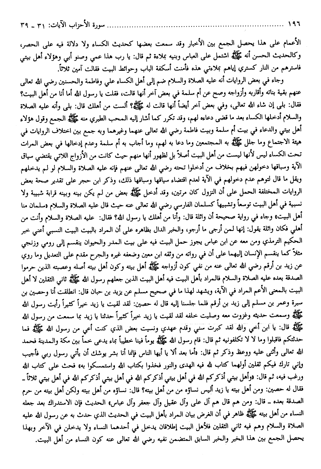 الأعمام على هذا يحصل الجمع بين الأخبار وقد سمعت بعضها كحديث الكساء ولا دلالة فيه على الحصر،