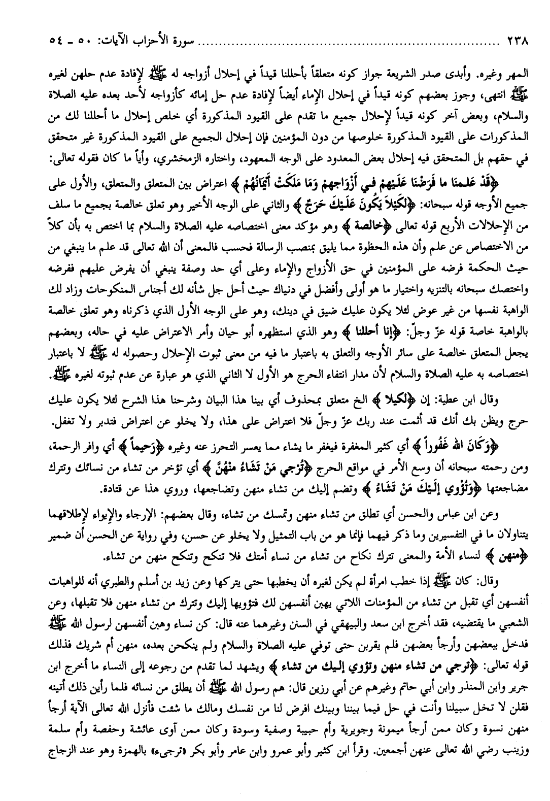 قَدْ عَلِمْنا ما فَرَضْنا عَلَيْهِمْ فِي أَزْواجِهِمْ وَما مَلَكَتْ أَيْمانُهُمْ اعتراض بين المتعلق والمتعلق، والأول على جميع الأوجه قوله سبحانه: لِكَيْلا يَكُونَ عَلَيْكَ حَرَجٌ والثاني على الوجه الأخير وهو تعلق خالصة بجميع ما سلف من الإحلالات الأربع قوله تعالى خالِصَةً وهو مؤكد معنى اختصاصه عليه الصلاة والسلام بما اختص به بأن كلا من الاختصاص عن علم وأن هذه الحظوة مما يليق بمنصب الرسالة فحسب فالمعنى أن الله تعالى قد علم ما ينبغي من حيث الحكمة فرضه على المؤمنين في حق الأزواج والإماء وعلى أي حد وصفة ينبغي أن يفرض عليهم ففرضه واختصك سبحانه بالتنزيه واختيار ما هو أولى وأفضل في دنياك حيث أحل جل شأنه لك أجناس المنكوحات وزاد لك الواهبة نفسها من غير عوض لئلا يكون عليك ضيق في دينك، وهو على الوجه الأول الذي ذكرناه وهو تعلق خالصة بالواهبة خاصة قوله عزّ وجلّ: إِنَّا أَحْلَلْنا وهو الذي استظهره أبو حيان وأمر الاعتراض عليه في حاله، وبعضهم يجعل المتعلق خالصة على سائر الأوجه والتعلق به باعتبار ما فيه من معنى ثبوت الإحلال وحصوله له صلّى الله عليه وسلم لا باعتبار اختصاصه به عليه الصلاة والسلام لأن مدار انتفاء الحرج هو الأول لا الثاني الذي هو عبارة عن عدم ثبوته لغيره صلّى الله عليه وسلم.