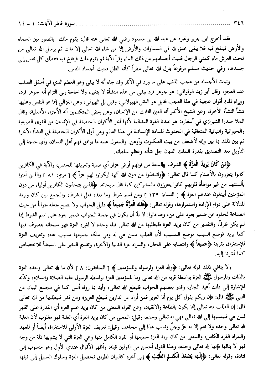 ومن قدر فليطلبها من الله تعالى قال: إن الطلب منه تعالى إنما يكون بالطاعة والانقياد، وعن الفراء المعنى من كان يريد علم العزة أي القدرة على القهر لمن هي فلينسبها إلى الله تعالى فهي له تعالى وحده، وقيل: المعنى من كان يريد العزة أي الغلبة فهو مغلوب لأن الغلبة لله تعالى وحده ولا تتم إلا به عزّ وجلّ ونسب هذا إلى مجاهد، وقيل: تعريف العزة الأولى للاستغراق أيضا أو للعهد والمراد الفرد الكامل، والمعنى من كان يريد العزة جميعها أو الفرد الكامل منها وهي العزة التي لا يشوبها ذلة من وجه فهو لا ينالها فإنها لله تعالى وحده، وهذا القول أحسن من القولين قبله، وأظهر الأقوال عندي الأول وهو منسوب إلى قتادة، وقوله تعالى: إِلَيْهِ يَصْعَدُ الْكَلِمُ الطَّيِّبُ إلى آخره كالبيان لطريق تحصيل العزة وسلوك السبيل إلى نيلها