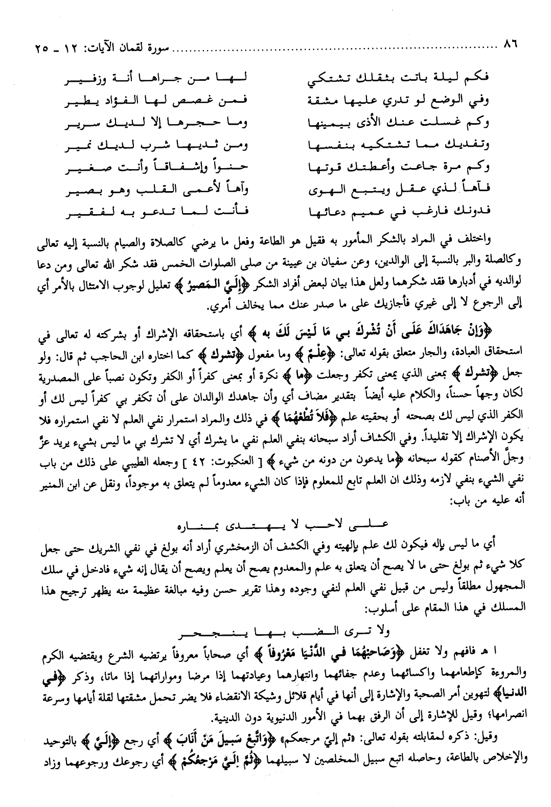 واختلف في المراد بالشكر المأمور به فقيل هو الطاعة وفعل ما يرضي كالصلاة والصيام بالنسبة إليه تعالى وكالصلة والبر بالنسبة إلى الوالدين، وعن سفيان بن عيينة من صلى الصلوات الخمس فقد شكر الله تعالى ومن دعا لوالديه في أدبارها فقد شكرهما ولعل هذا بيان لبعض أفراد الشكر إِلَيَّ الْمَصِيرُ تعليل لوجوب الامتثال بالأمر أي إلى الرجوع لا إلى غيري فأجازيك على ما صدر عنك مما يخالف أمري.