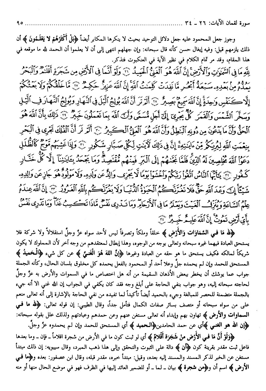 وجوز جعل المحمود عليه جعل دلائل التوحيد بحيث لا ينكرها المكابر أيضا بَلْ أَكْثَرُهُمْ لا يَعْلَمُونَ أن ذلك يلزمهم قيل: وفيه إيغال حسن كأنه قال سبحانه: وإن جهلهم انتهى إلى أن لا يعلموا أن الحمد لله ما موقعه في هذا المقام، وقد مر تمام الكلام في نظير الآية في العنكبوت فتذكر.