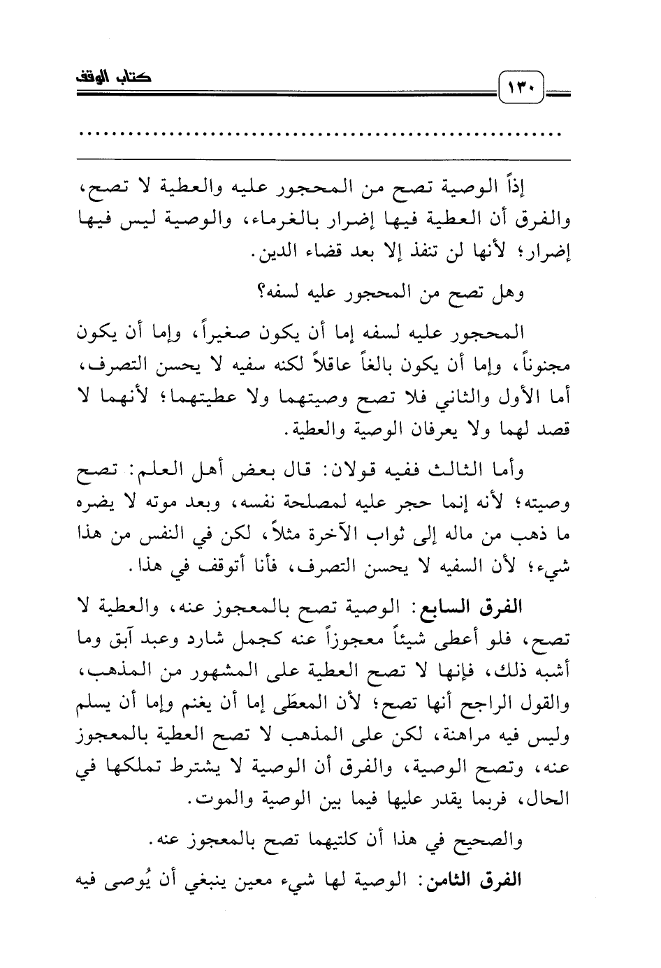 وأما الثالث ففيه قولان: قال بعض أهل العلم: تصح وصيته؛ لأنه إنما حجر عليه لمصلحة نفسه، وبعد موته لا يضره ما ذهب من ماله إلى ثواب الآخرة مثلاً، لكن في النفس من هذا شيء؛ لأن السفيه لا يحسن التصرف، فأنا أتوقف في هذا.