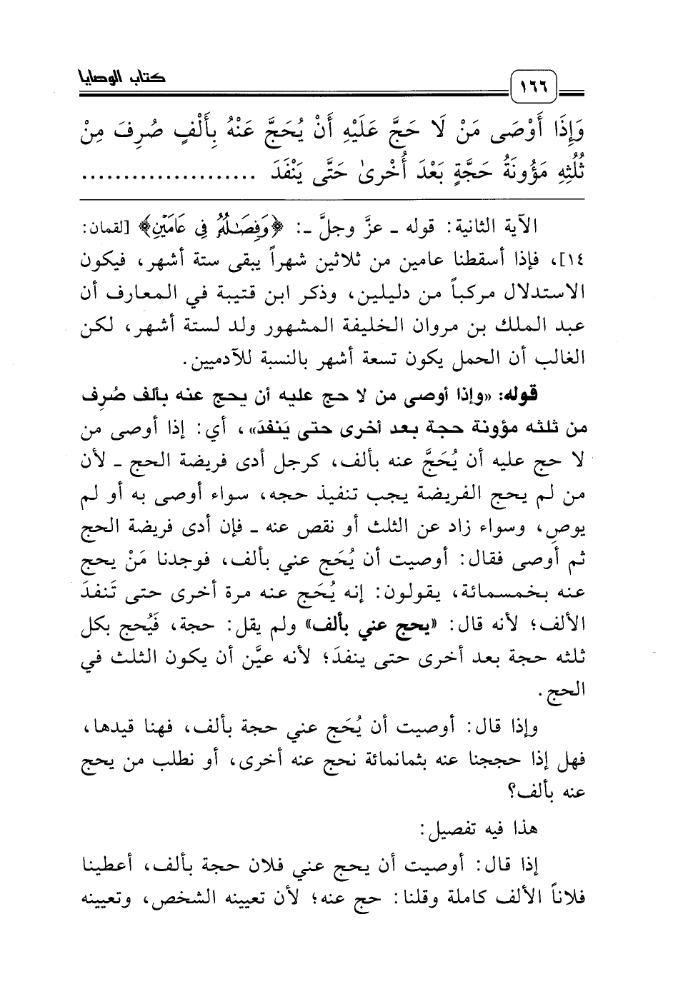 الآية الثانية: قوله ـ عزّ وجل ـ: {وَفِصَالُهُ فِي عَامَيْنِ} [لقمان: 14]، فإذا أسقطنا عامين من ثلاثين شهراً يبقى ستة أشهر، فيكون الاستدلال مركباً من دليلين، وذكر ابن قتيبة في المعارف أن عبد الملك بن مروان الخليفة المشهور ولد لستة أشهر، لكن الغالب أن الحمل يكون تسعة أشهر بالنسبة للآدميين.