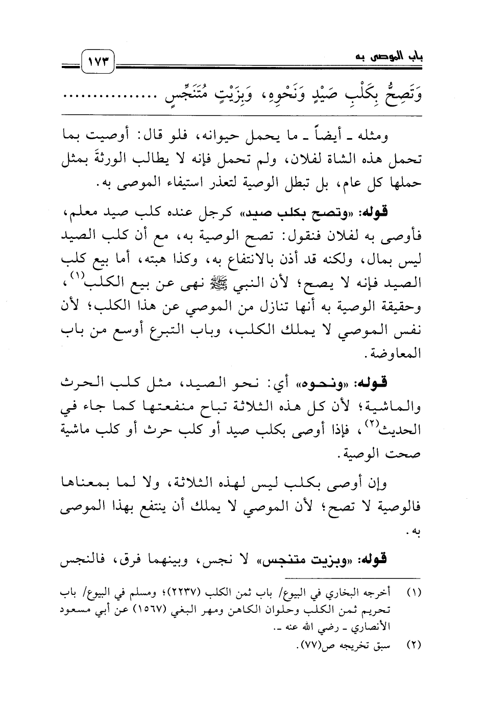 قوله: «ونحوه» أي: نحو الصيد، مثل كلب الحرث والماشية؛ لأن كل هذه الثلاثة تباح منفعتها كما جاء في الحديث (¬2)، فإذا أوصى بكلب صيد أو كلب حرث أو كلب ماشية صحت الوصية.