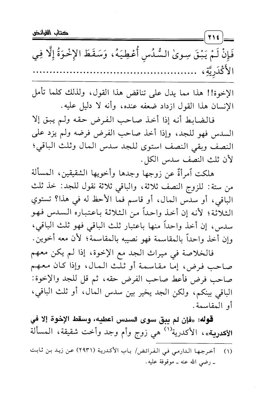 (¬1) أخرجها الدارمي في الفرائض/ باب الأكدرية (2931) عن زيد بن ثابت ـ رضي الله عنه ـ موقوفة عليه.