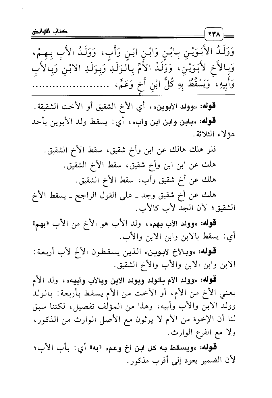 قوله: «وولد الأبوين»، أي الأخ الشقيق أو الأخت الشقيقة.