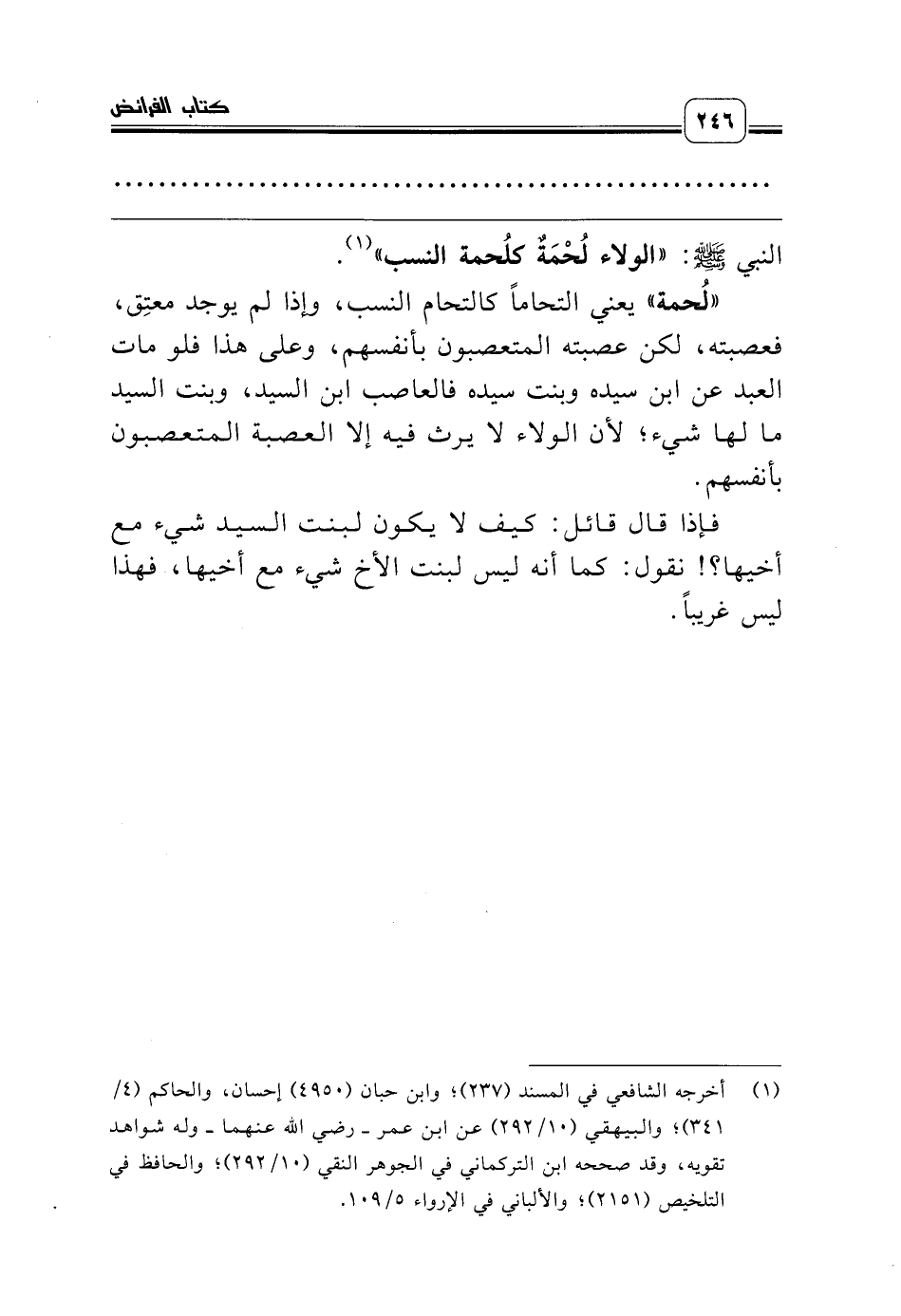 النبي صلّى الله عليه وسلّم: «الولاء لُحْمَةٌ كلُحمة النسب» (¬1).