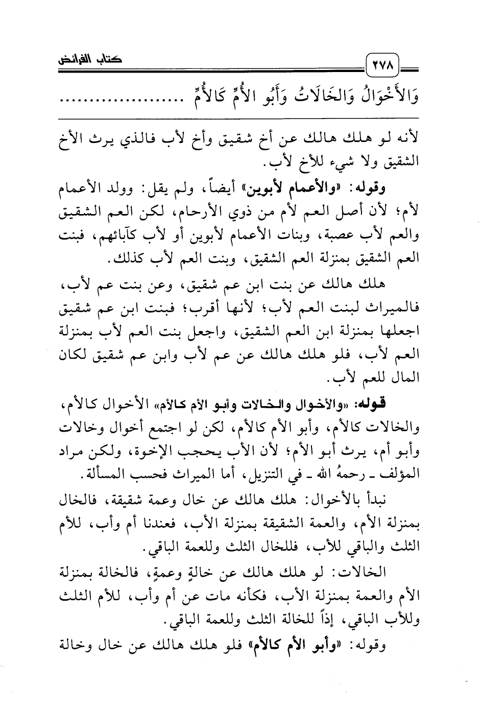 وقوله: «والأعمام لأبوين» أيضاً، ولم يقل: وولد الأعمام لأم؛ لأن أصل العم لأم من ذوي الأرحام، لكن العم الشقيق والعم لأب عصبة، وبنات الأعمام لأبوين أو لأب كآبائهم، فبنت العم الشقيق بمنزلة العم الشقيق، وبنت العم لأب كذلك.