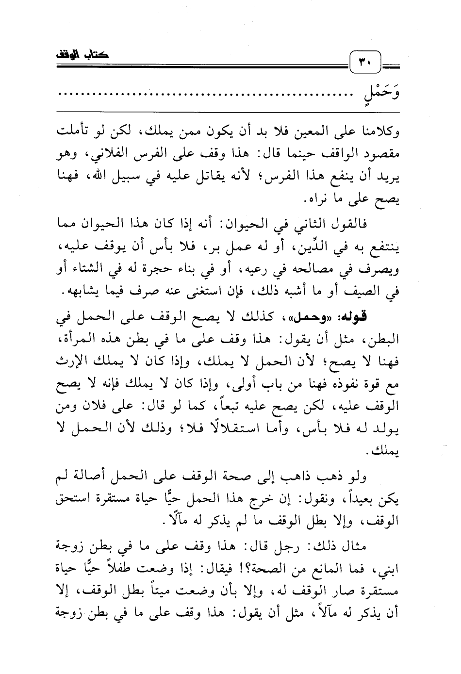 ولو ذهب ذاهب إلى صحة الوقف على الحمل أصالة لم يكن بعيداً، ونقول: إن خرج هذا الحمل حيًّا حياة مستقرة استحق الوقف، وإلا بطل الوقف ما لم يذكر له مآلاً.