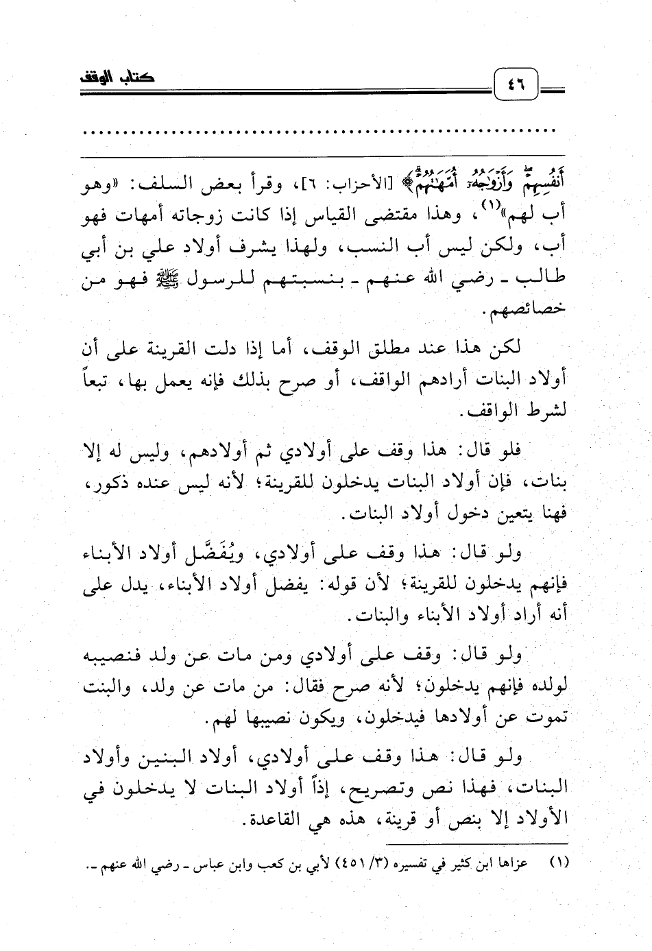 ولو قال: هذا وقف على أولادي، أولاد البنين وأولاد البنات، فهذا نص وتصريح، إذاً أولاد البنات لا يدخلون في الأولاد إلا بنص أو قرينة، هذه هي القاعدة.