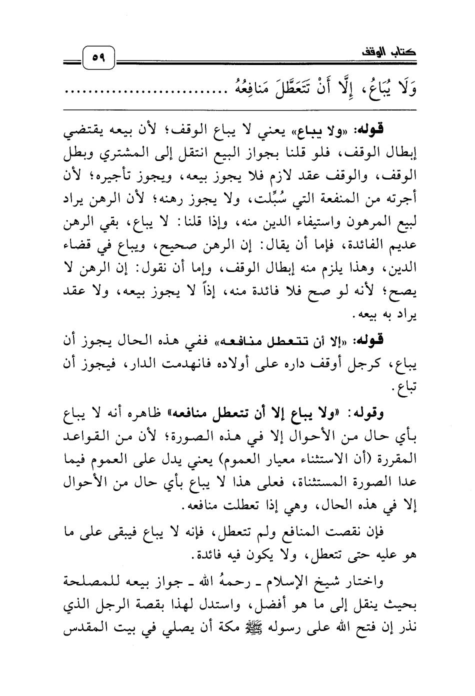 قوله: «إلا أن تتعطل منافعه» ففي هذه الحال يجوز أن يباع، كرجل أوقف داره على أولاده فانهدمت الدار، فيجوز أن تباع.