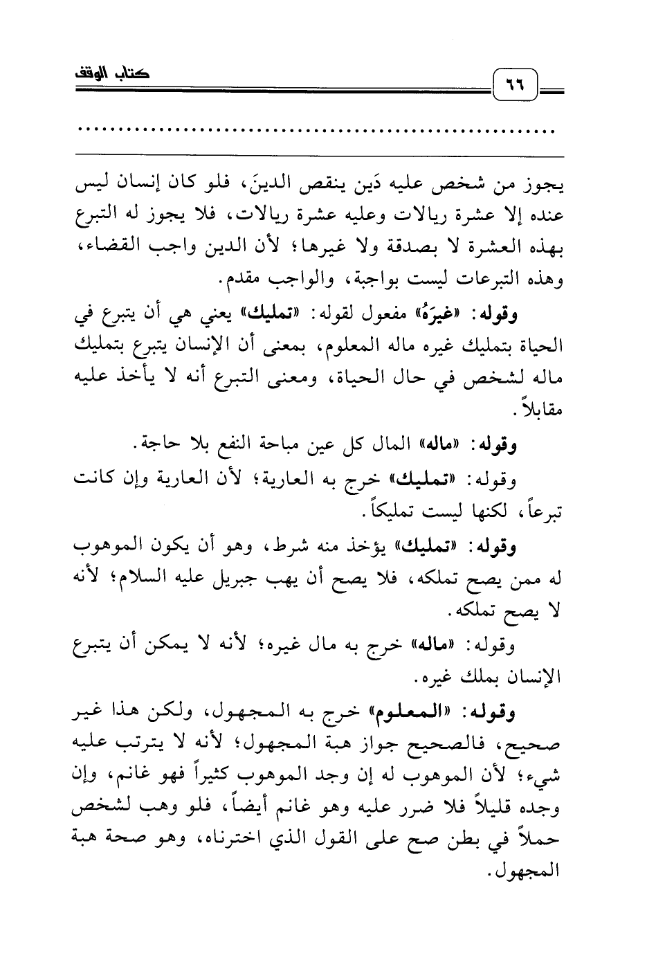 وقوله: «غيرَهُ» مفعول لقوله: «تمليك» يعني هي أن يتبرع في الحياة بتمليك غيره ماله المعلوم، بمعنى أن الإنسان يتبرع بتمليك ماله لشخص في حال الحياة، ومعنى التبرع أنه لا يأخذ عليه مقابلاً.