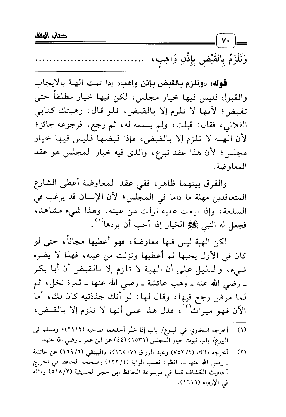 (¬1) أخرجه البخاري في البيوع/ باب إذا خيَّر أحدهما صاحبه (2112)؛ ومسلم في البيوع/ باب ثبوت خيار المجلس (1531) (44) عن ابن عمر ـ رضي الله عنهما ـ.