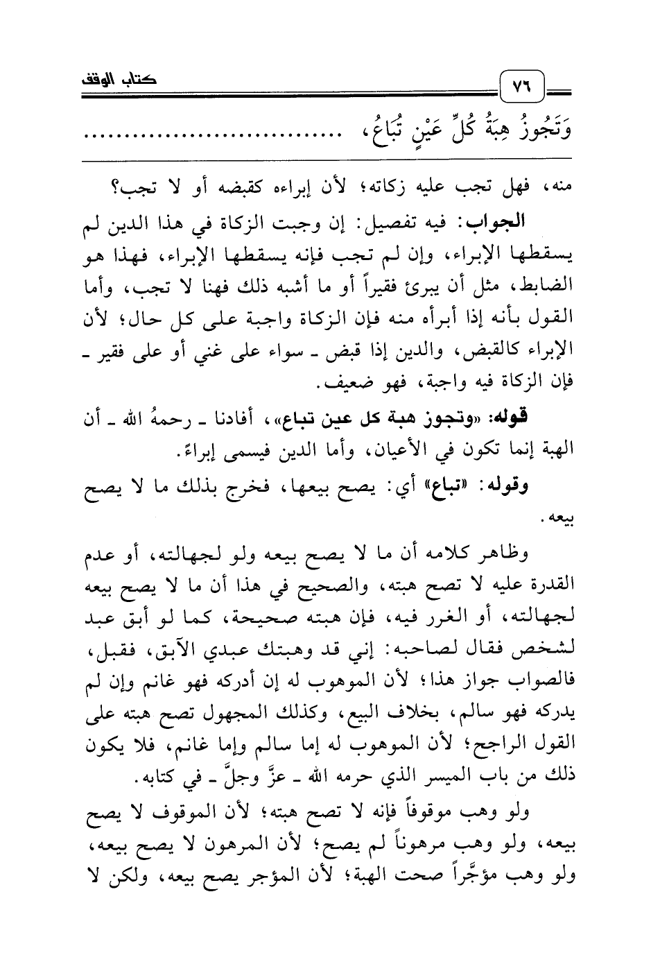 قوله: «وتجوز هبة كل عين تباع»، أفادنا ـ رحمه الله ـ أن الهبة إنما تكون في الأعيان، وأما الدين فيسمى إبراءً.