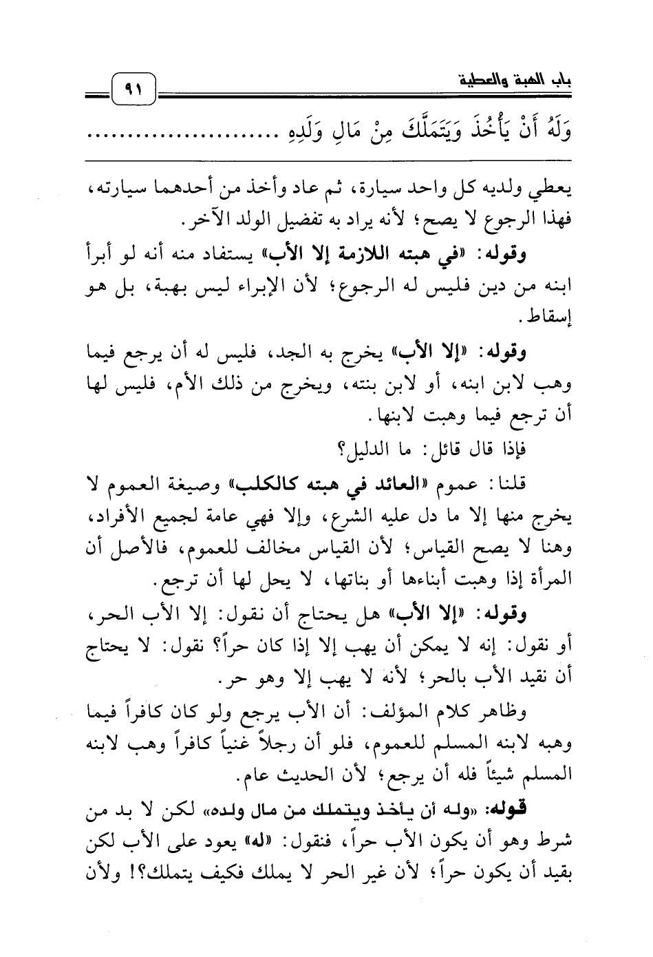 وقوله: «إلا الأب» هل يحتاج أن نقول: إلا الأب الحر، أو نقول: إنه لا يمكن أن يهب إلا إذا كان حراً؟ نقول: لا يحتاج أن نقيد الأب بالحر؛ لأنه لا يهب إلا وهو حر.