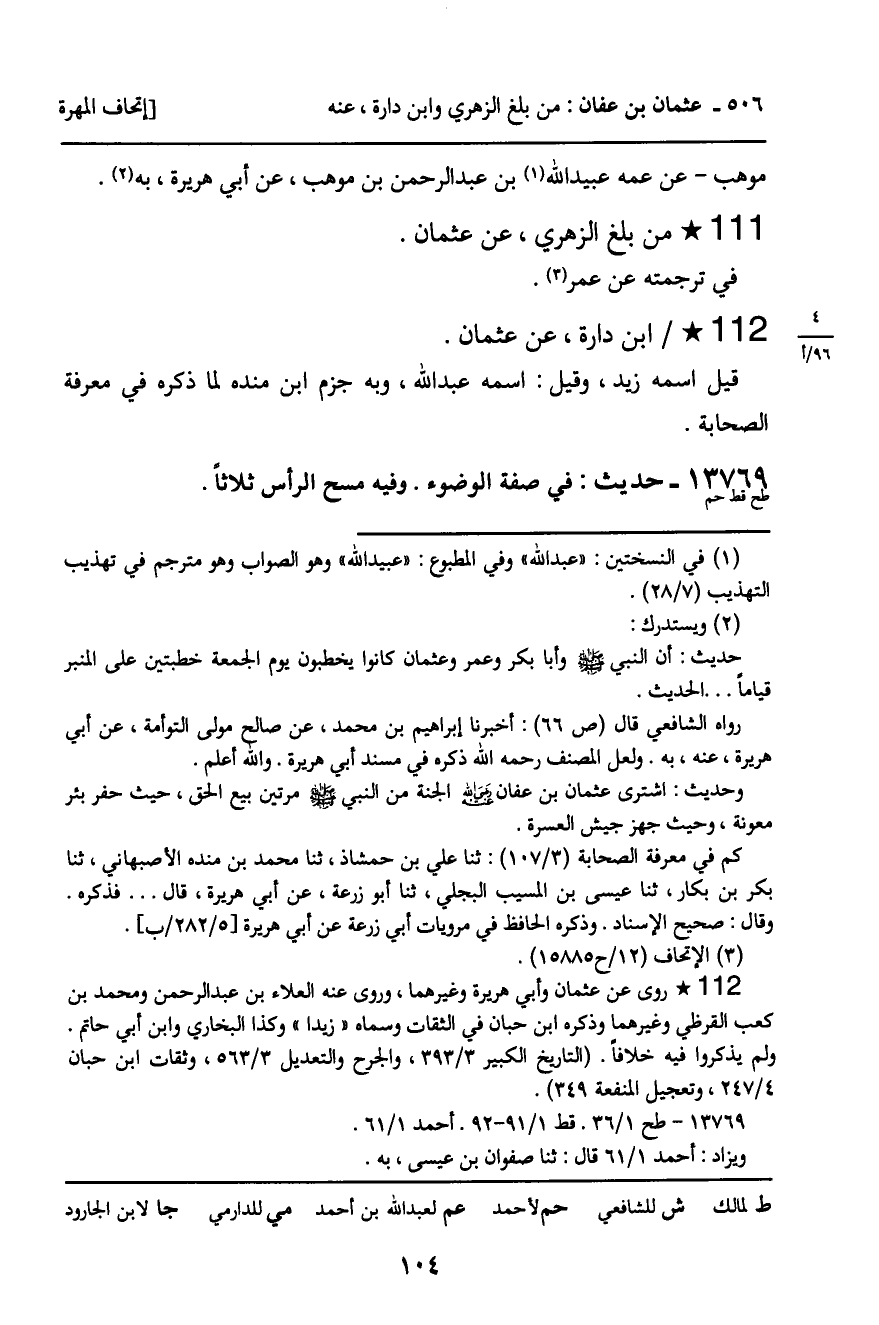 13769 - حَدِيثٌ (طح قط حم) : فِي صِفَةِ الْوُضُوءِ. وَفِيهِ مَسْحُ الرَّأْسِ ثَلاثًا.