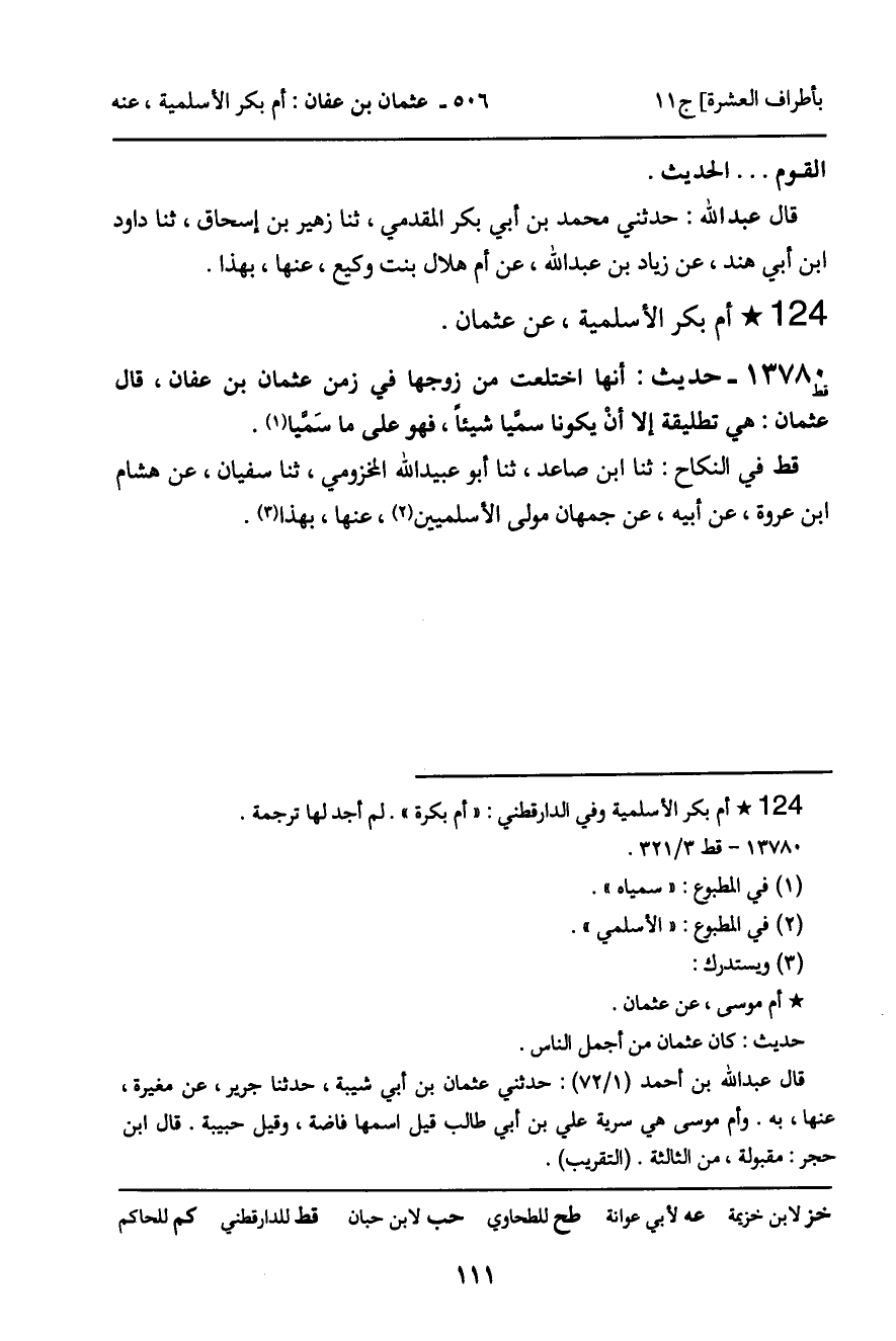 ـ أُمُّ بَكْرٍ الأَسْلَمِيَّةُ، عَنْ عُثْمَانَ.