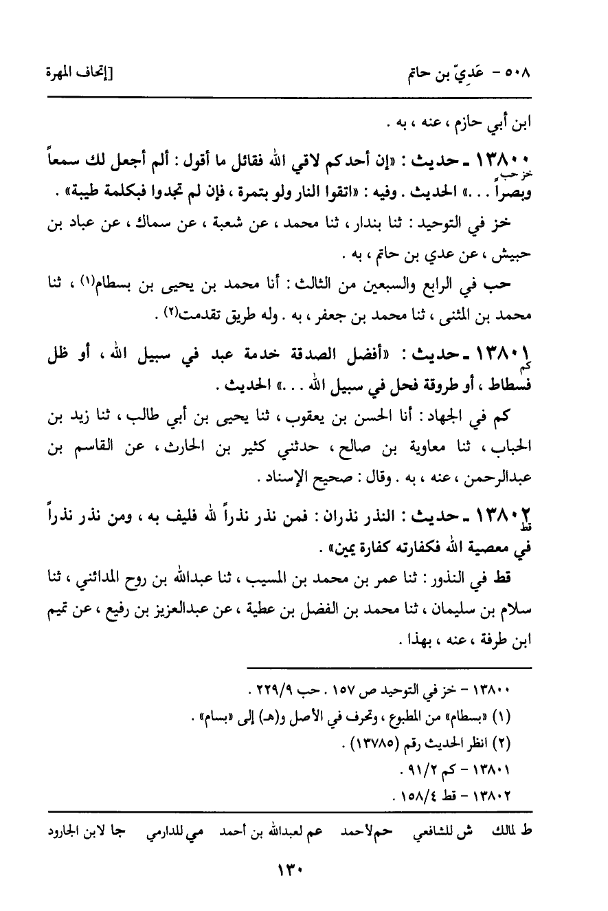 خز فِي التَّوْحِيدِ: ثنا بُنْدَارٌ، ثنا مُحَمَّدٌ، عَنْ شُعْبَةَ، عَنْ سِمَاكٍ، عَنْ عَبَّادِ بْنِ حُبَيْشٍ، عَنْ عَدِيِّ بْنِ حَاتِمٍ، بِهِ.