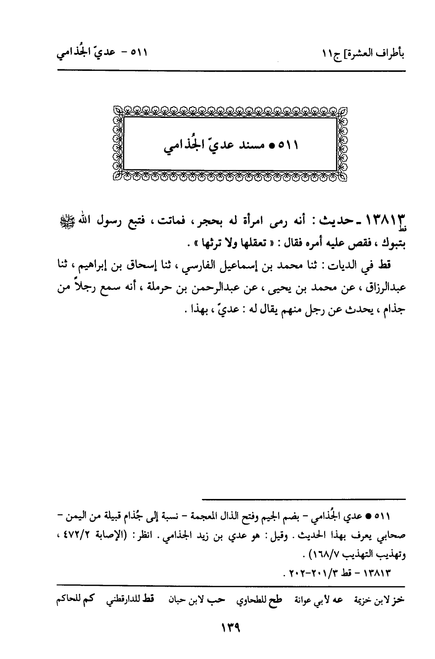 511 ـ مُسْنَدُ عَدِيٍّ الْجُذَامِيِّ.