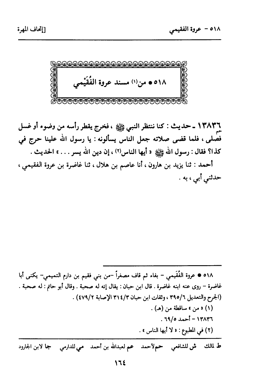 518 ـ مِنْ مُسْنَدِ عُرْوَةَ الْفُقَيْمِيِّ.