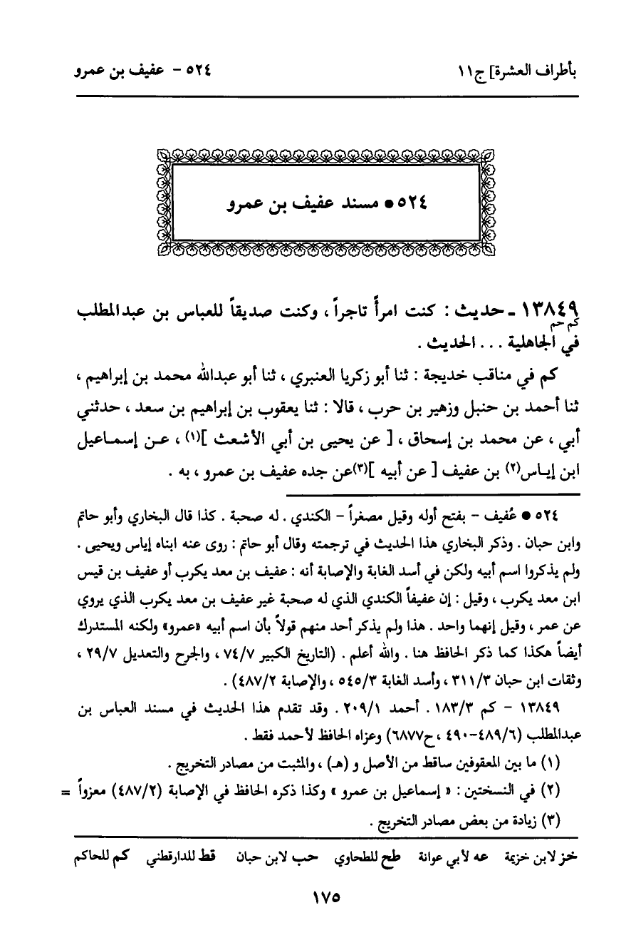 524 ـ مُسْنَدُ عَفِيفِ بْنِ عَمْرٍو.