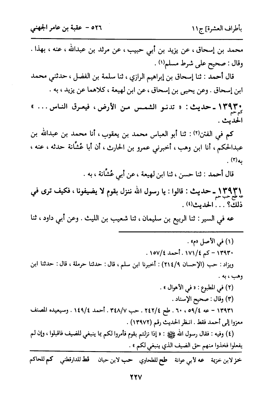 13931 - حَدِيثٌ (عه طح حب حم) : قَالُوا: يَا رَسُولَ اللَّهِ، نَنْزِلُ بِقَوْمٍ لا يُضَيِّفُونَا، فَكَيْفَ تَرَى فِي ذَلِكَ؟ ... الْحَدِيثَ.