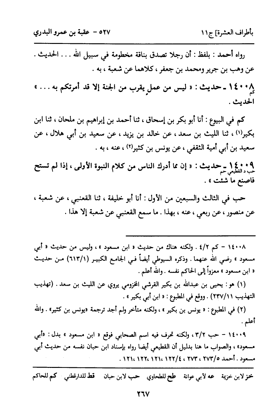 -[268]- قُلْتُ: رَوَاهُ أَبُو دَاوُدَ: عَنِ الْقَعْنَبِيِّ، وَرَوَاهُ الْقَطِيعِيُّ فِي زَوَائِدِ الْمُسْنَدِ: عَنْ أَبِي خَلِيفَةَ الْفَضْلِ بْنِ الْحُبَابِ، بِهِ.