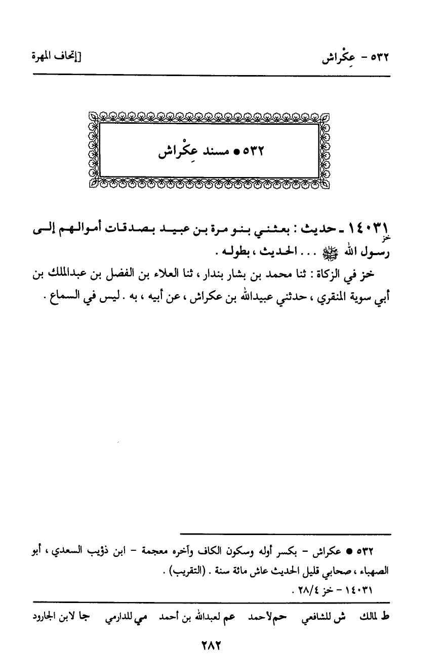 532 ـ مُسْنَدُ عِكْرَاشٍ.
