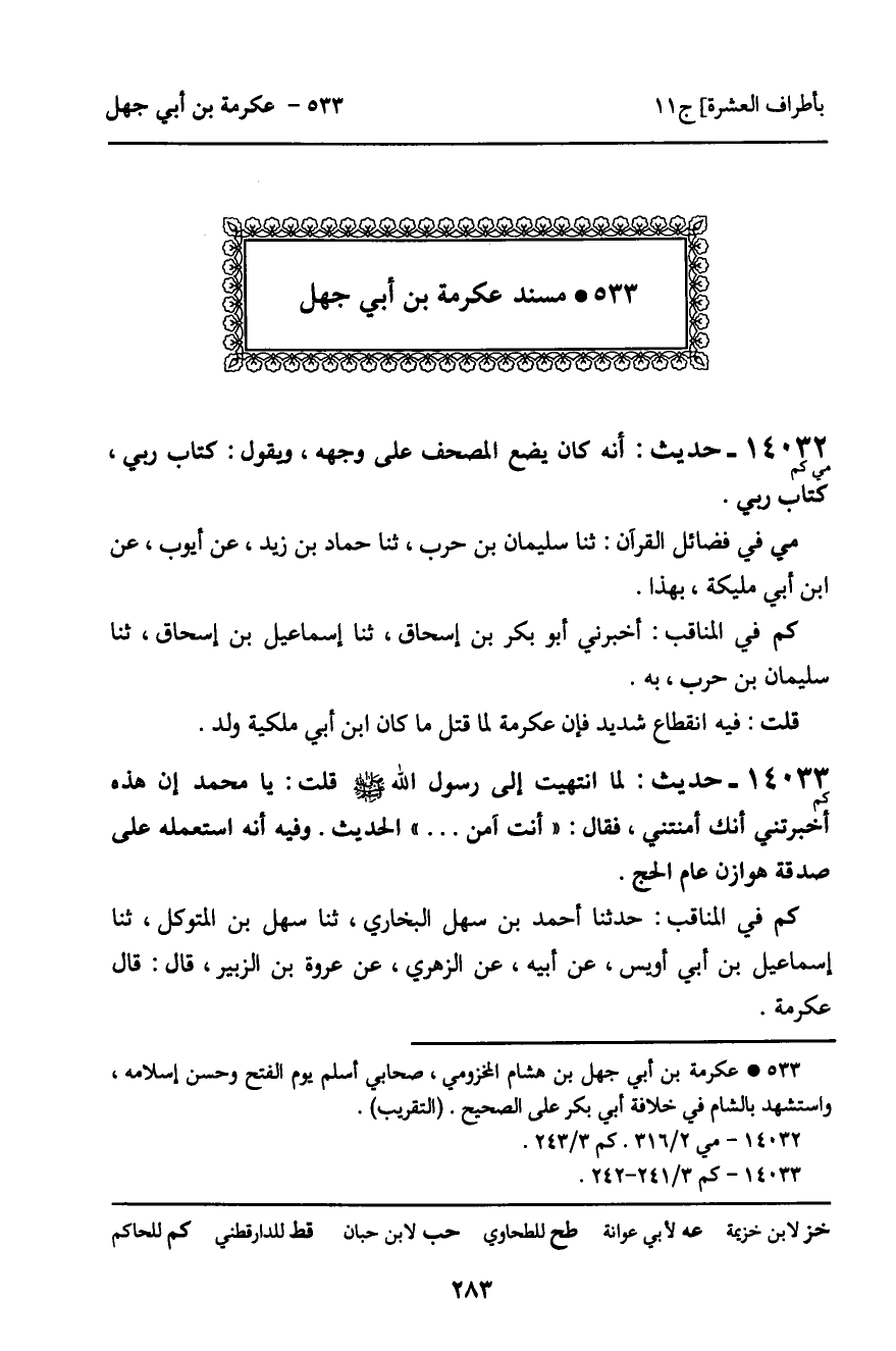 533 ـ مُسْنَدُ عِكْرِمَةَ بْنِ أَبِي جَهْلٍ.