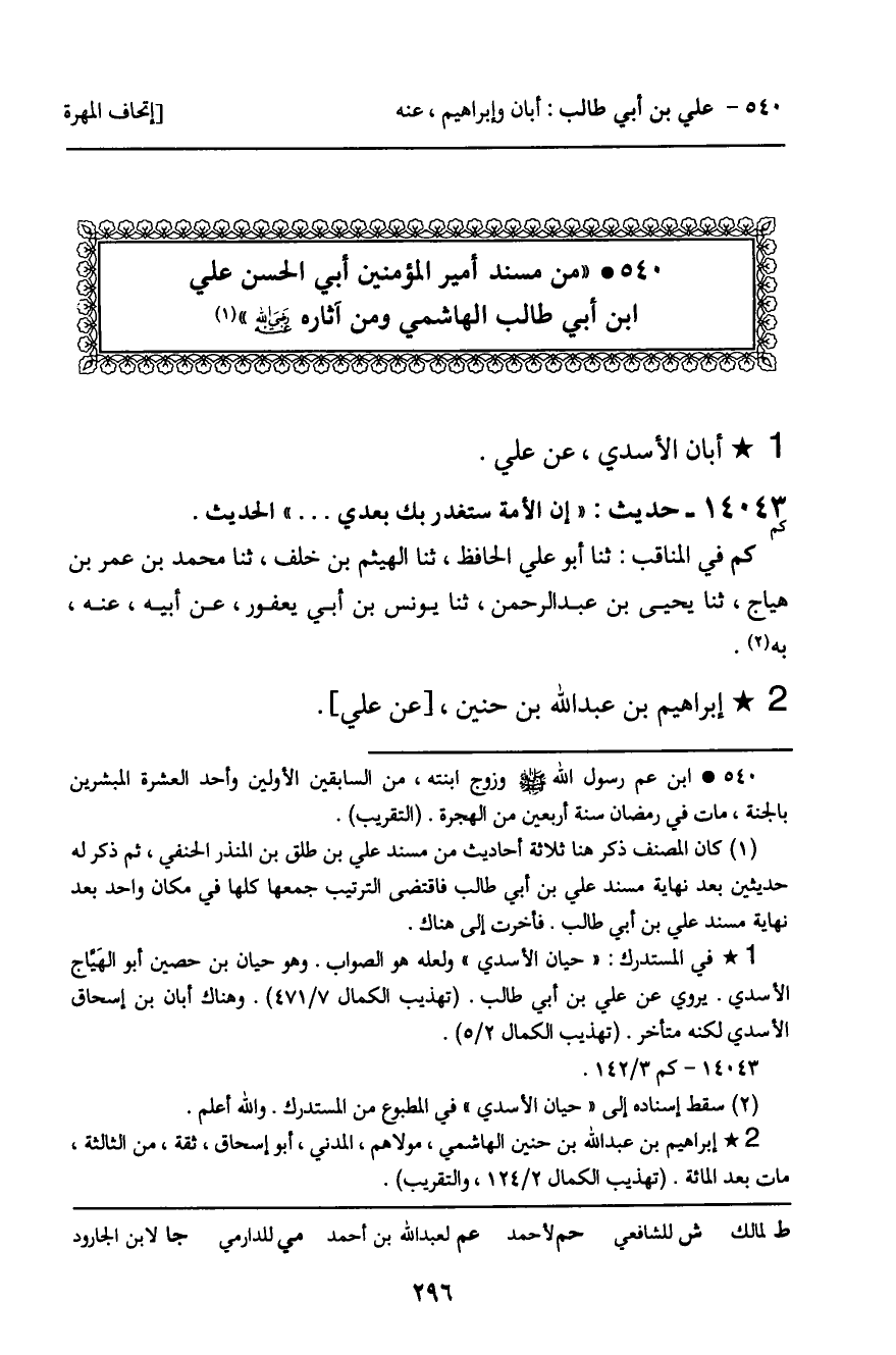 ـ إِبْرَاهِيمُ بْنُ عَبْدِ اللَّهِ بْنِ حُنَيْنٍ، عَنْ عَلِيٍّ.