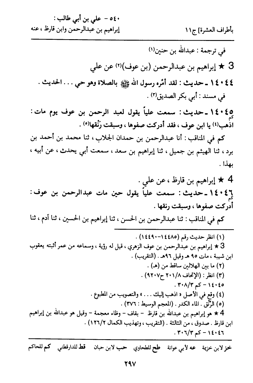 ـ إِبْرَاهِيمُ بْنُ عَبْدِ الرَّحْمَنِ بْنِ عَوْفٍ، عَنْ عَلِيٍّ.