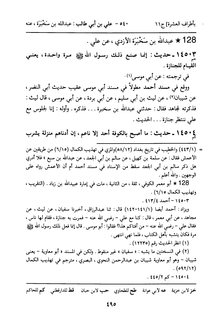 ـ عَبْدُ اللَّهِ بْنُ سَخْبَرَةَ الأَزْدِيُّ، عَنْ عَلِيٍّ.