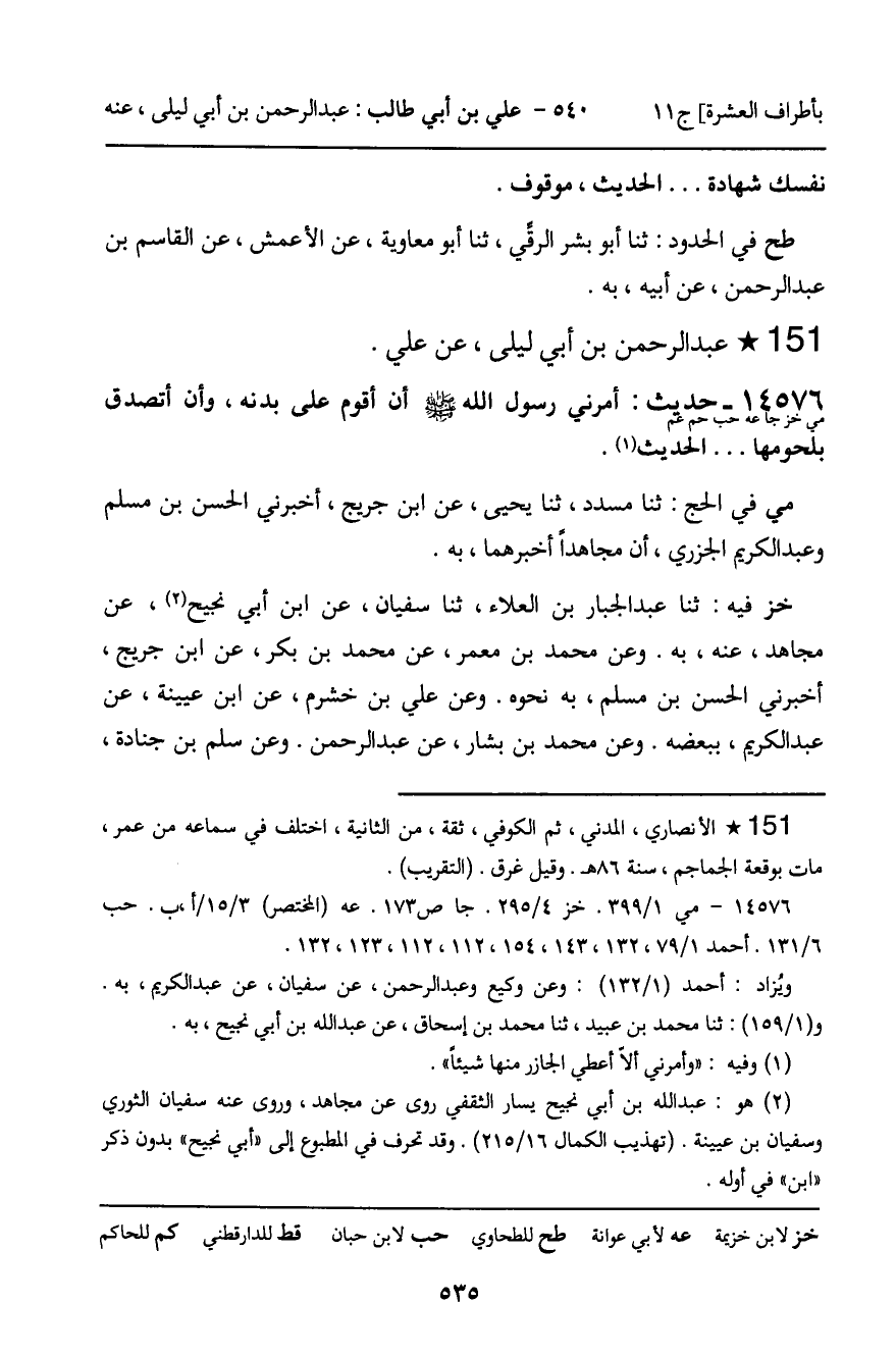 ـ عَبْدُ الرَّحْمَنِ بْنُ أَبِي لَيْلَى، عَنْ عَلِيٍّ.