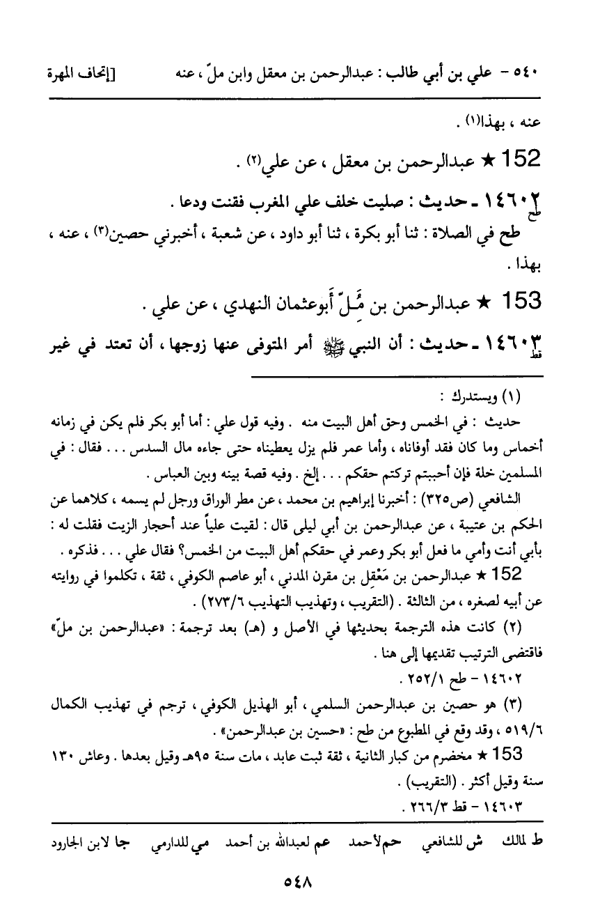 ـ عَبْدُ الرَّحْمَنِ بْنُ مَعْقِلٍ، عَنْ عَلِيٍّ.