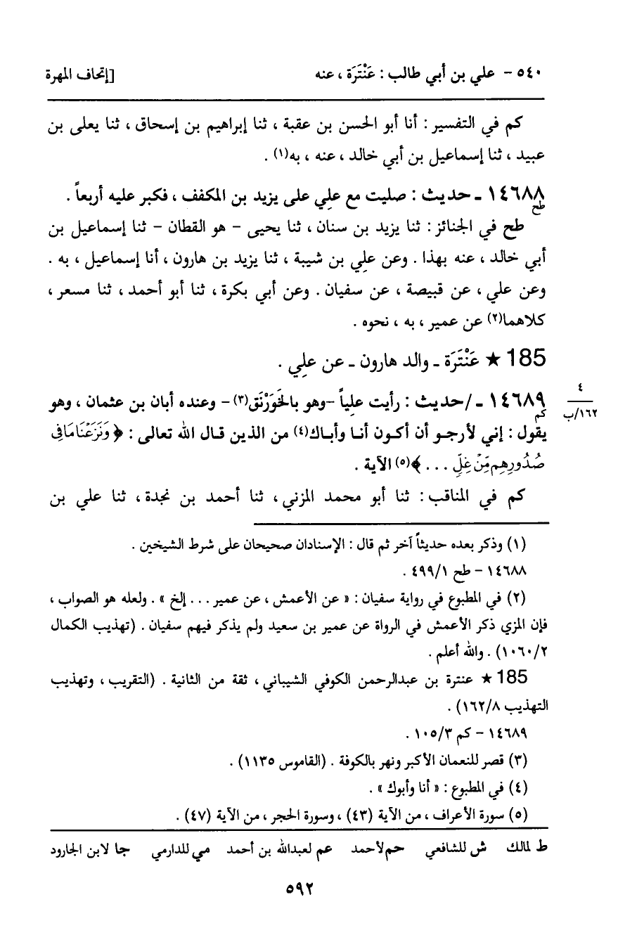 ـ عَنْتَرَةَ وَالِدُ هَارُونَ، عَنْ عَلِيٍّ.