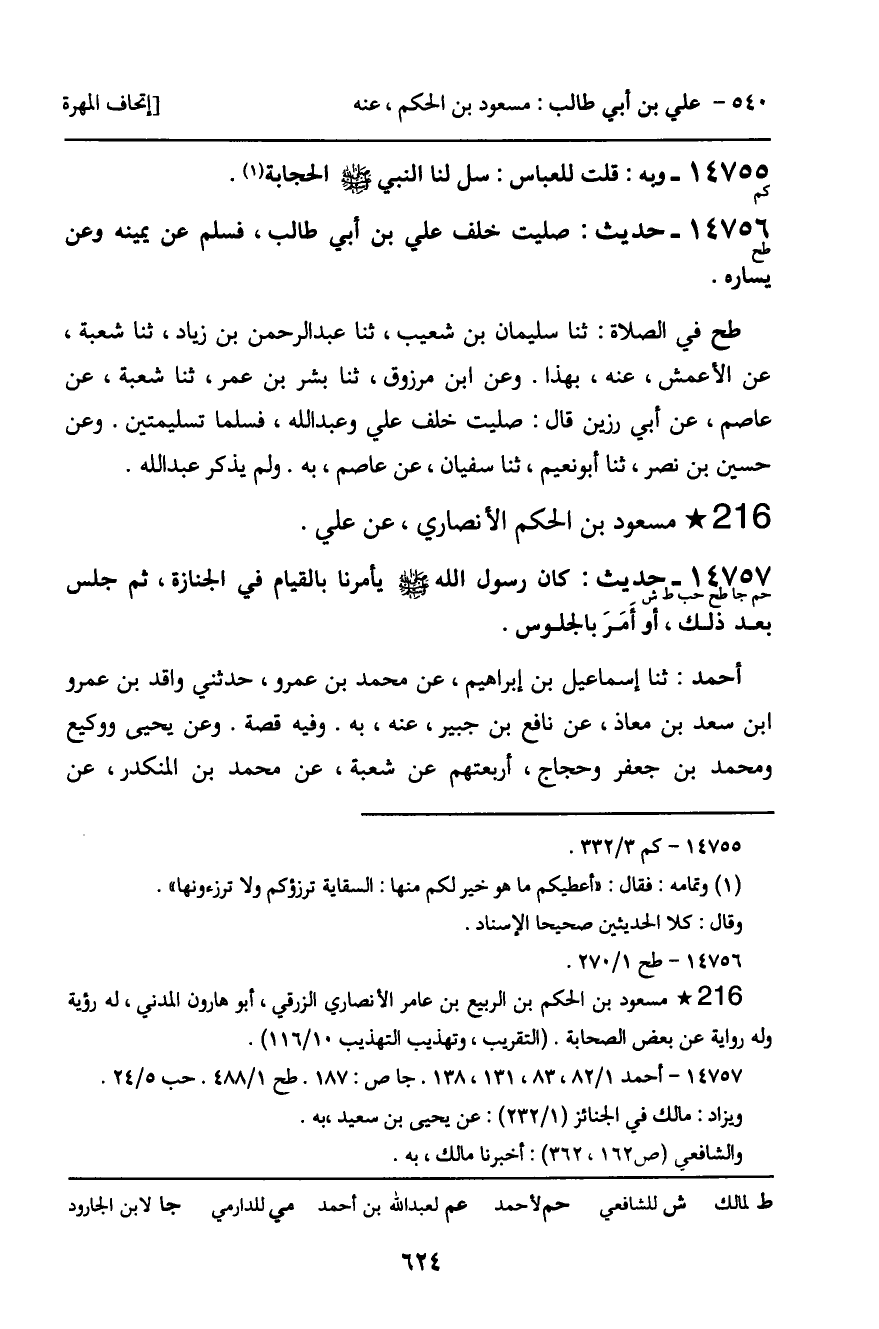 ـ مَسْعُودُ بْنُ الْحَكَمِ الأَنْصَارِيُّ، عَنْ عَلِيٍّ.