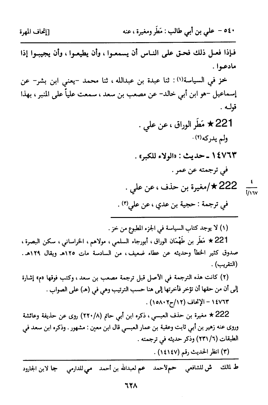 ـ مَطَرٌ الْوَرَّاقُ، عَنْ عَلِيٍّ.